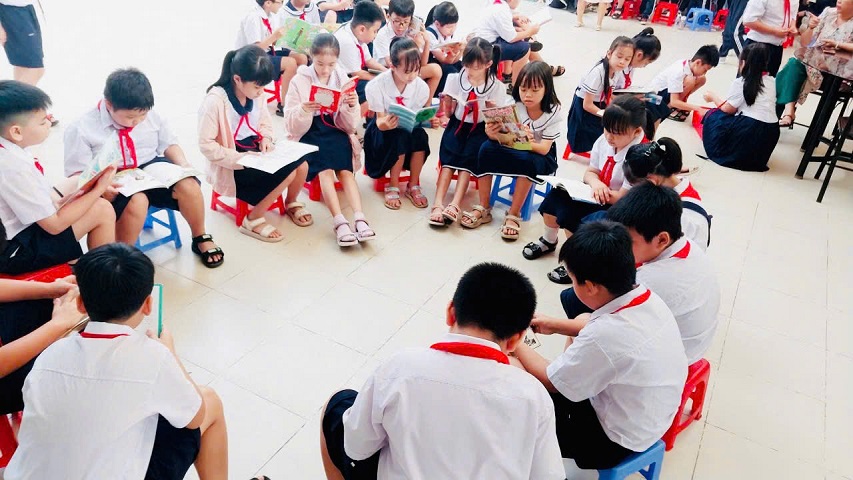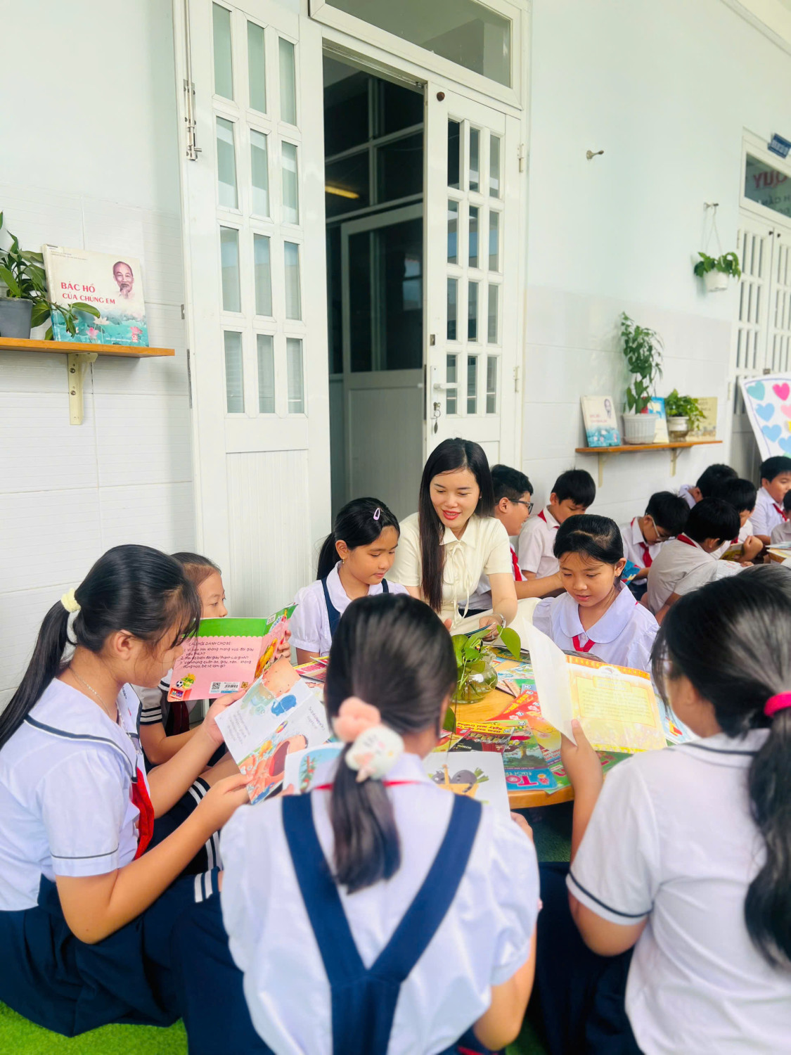 Trong không khí sôi nổi, nhằm tôn vinh giá trị của sách và khẳng định vai trò của văn hóa đọc trong đời sống, chương trình “Ngày Sách và Văn hóa đọc Việt Nam lần 5 - Năm 2026” đã được nhà trường tổ chức với nhiều hoạt động như: xếp mô hình sách, giới thiệu sách hay, kể chuyện các anh hùng nhỏ tuổi, cùng đọc và chia sẻ sách, viết ước mơ của em,… thu hút đông đảo các em học sinh tham gia.